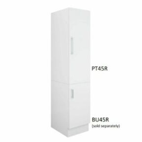 Prefer the classic approach? Our 45cm Traditional Pantry Cupboard is a freestanding pantry cupboard that delivers reliable, no-fuss storage. Also finished in high-gloss white, with adjustable shelves and a left or right hinge to suit your layout, it’s easy to customise and works beautifully in both small and large kitchens. The robust build and quality fittings mean you get lasting value, with the flexibility to add extra storage baskets or bins as needed. Like our pull out model, it’s pre-assembled for fast, frustration-free installation.