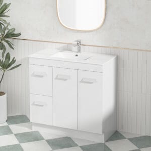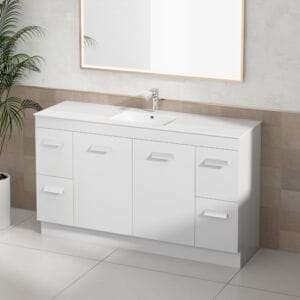 Freestanding vanities offer broad versatility in design, fitting seamlessly into modern, traditional, or minimalist bathroom decor. A freestanding bathroom vanity style allows you to create striking visual aesthetics, with finishes ranging from clean white, classic timber-look, or sleek contemporary textures. With various colours, materials, and configurations available, freestanding vanity options easily elevate bathroom aesthetics and complement diverse contemporary bathrooms, ensuring your space reflects your style and taste.