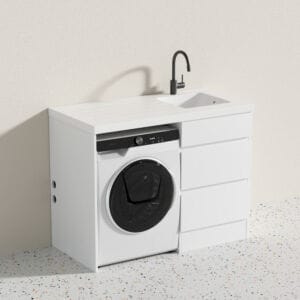 It’s essential for a laundry room to be functional; to what extent depends on the design. If you only need your laundry to facilitate the washing and drying clothes, then a simple laundry unit/sink combo will suffice. You can opt for a modern laundry unit for a contemporary touch. However, if you intend to wash, dry, sort and iron clothes in your laundry room, you will need bench space and can opt for a more stylish undermount laundry sink installed with our base cabinets and benchtops.