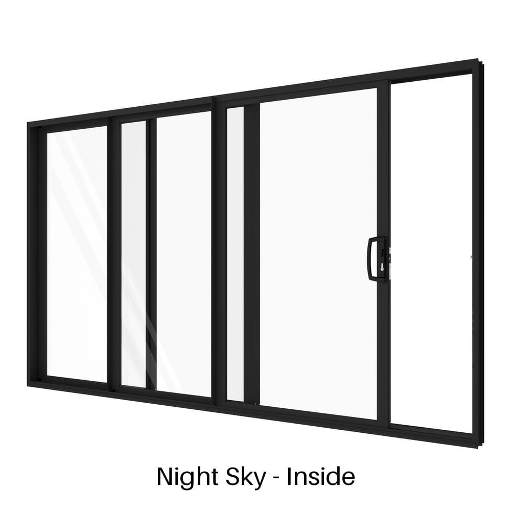 - Three-Panel Functionality: One fixed and two stacking operable panels provide wide, flexible openings.