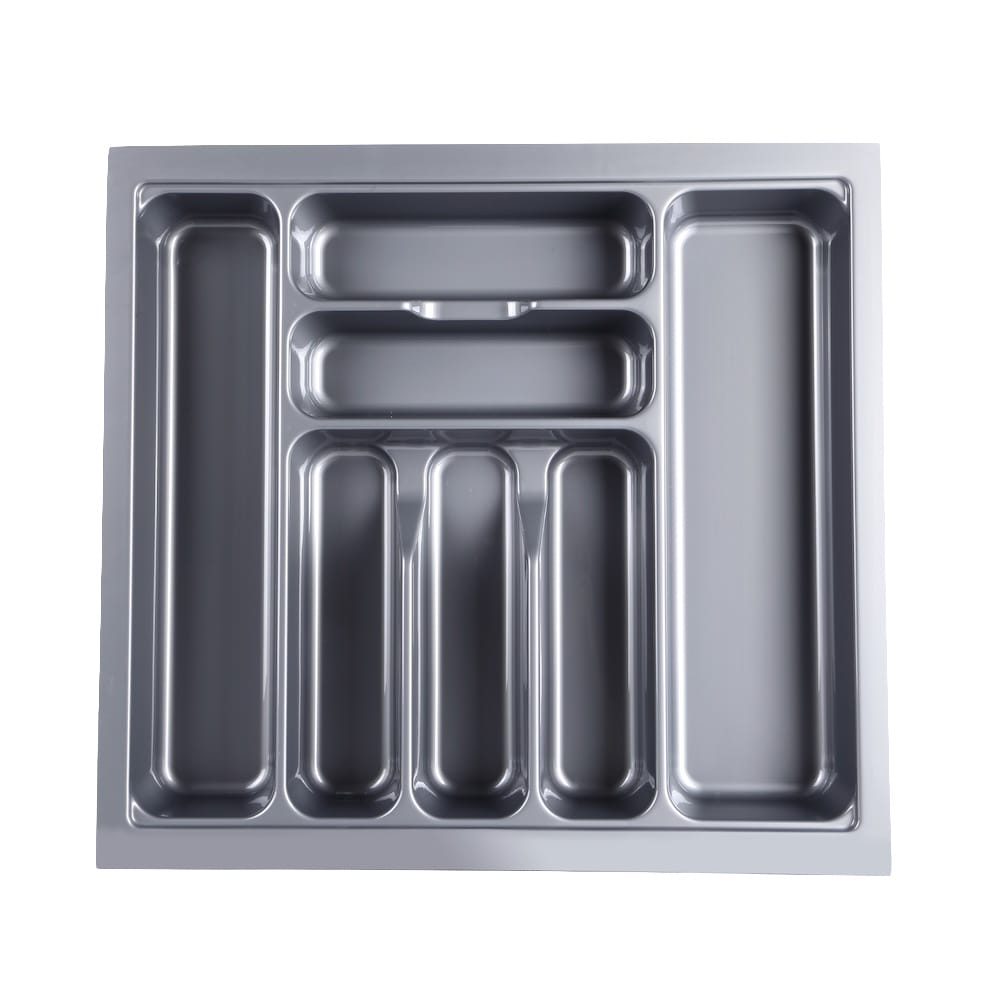 Declutter drawers easily with this durable 60cm Cutlery Tray, featuring organised compartments tailored for the 60cm 3 Drawer Base Cabinet—ideal for tidy, efficient kitchens.
