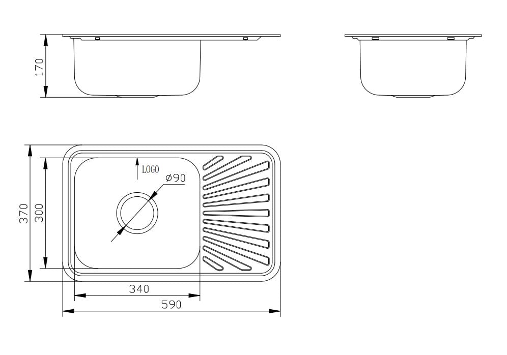 Overall dimensions: 590mm L x 370mm W x 170mm D
