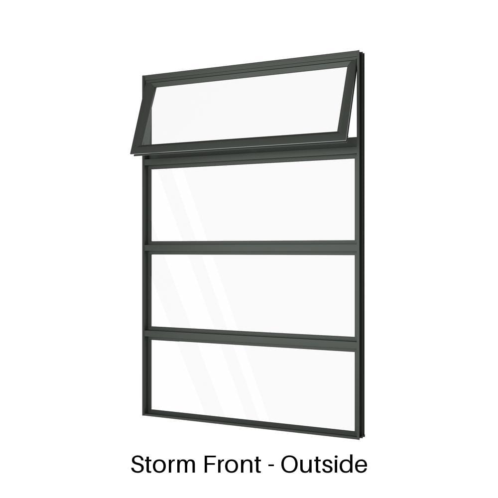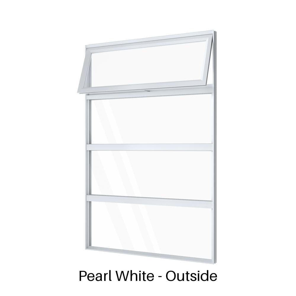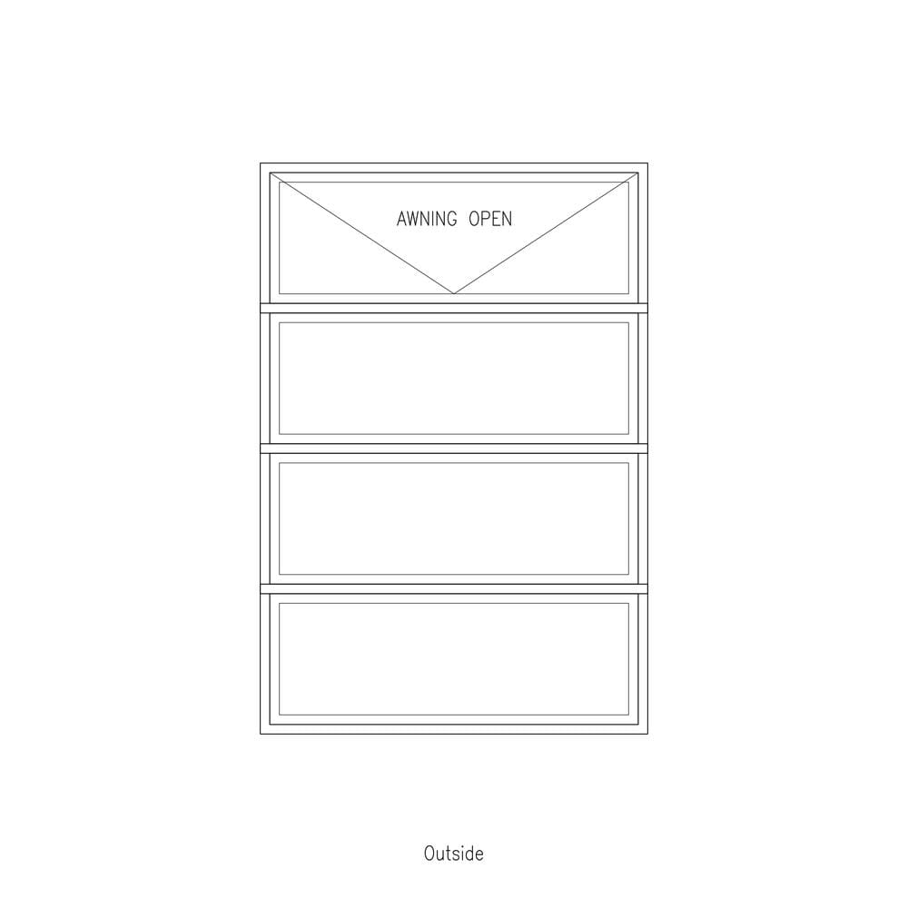 - Configuration: Vertically stacked single awning over three fixed lites
