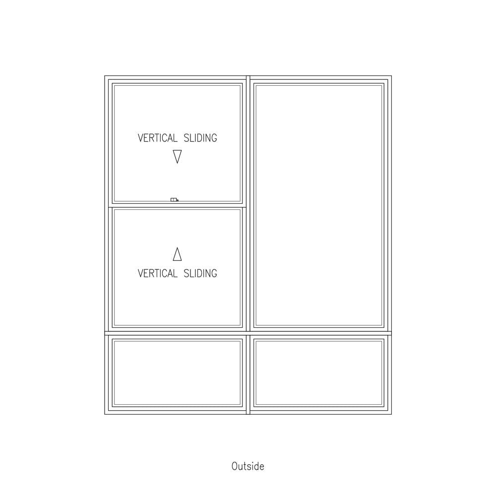 - Configuration: Double hung window with fixed side lite above two fixed lowlites