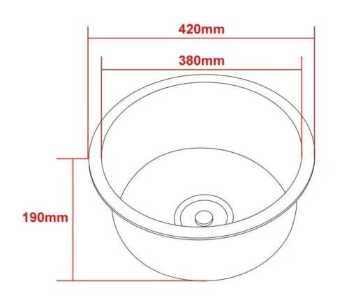 The 420mm external diameter and 380mm internal bowl provide practical workspace without crowding the benchtop. The 190mm bowl depth supports soaking pots and rinsing produce with ease. This single bowl sink fits neatly into smaller kitchens, butler’s pantries, and bar areas. It also works well as a round kitchen or laundry sink where space is limited.