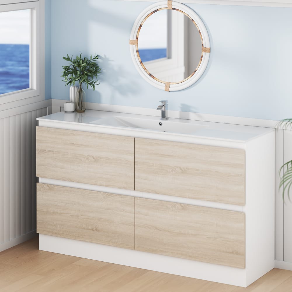 Nordic features a beautiful, soft finish with warm, subtle undertones that add a welcoming touch to any bathroom. Its smooth, textured surface provides a contemporary yet timeless appearance, complementing minimalist, coastal, or classic interior styles perfectly. The handleless design emphasises the vanity’s clean lines, resulting in a sleek and clutter-free appearance that is ideal for both small and large bathrooms.