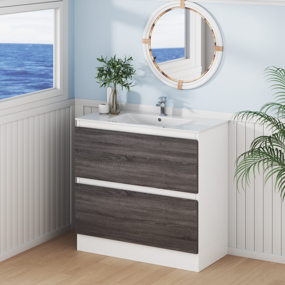 The handleless drawer profile keeps the vanity looking sharp and uncluttered. It suits minimalist layouts and helps smaller bathrooms feel calmer and more open. When paired with white cabinetry, the contrast feels intentional and high-end rather than busy.