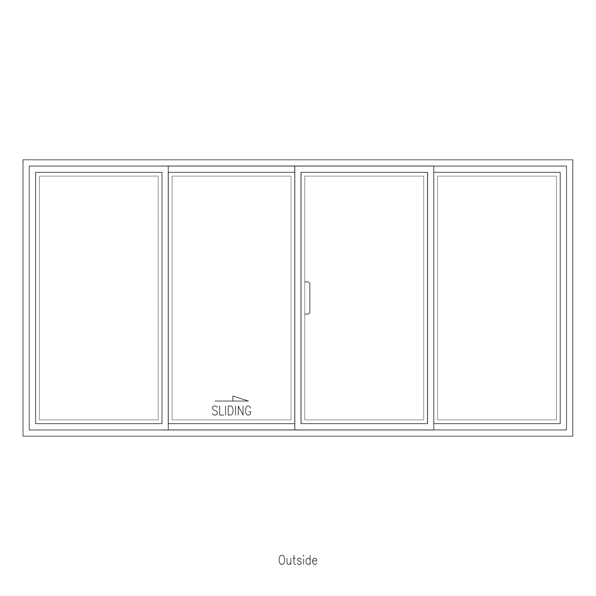 Single Sliding Window for 2nd Panel with Three Fixed Lites